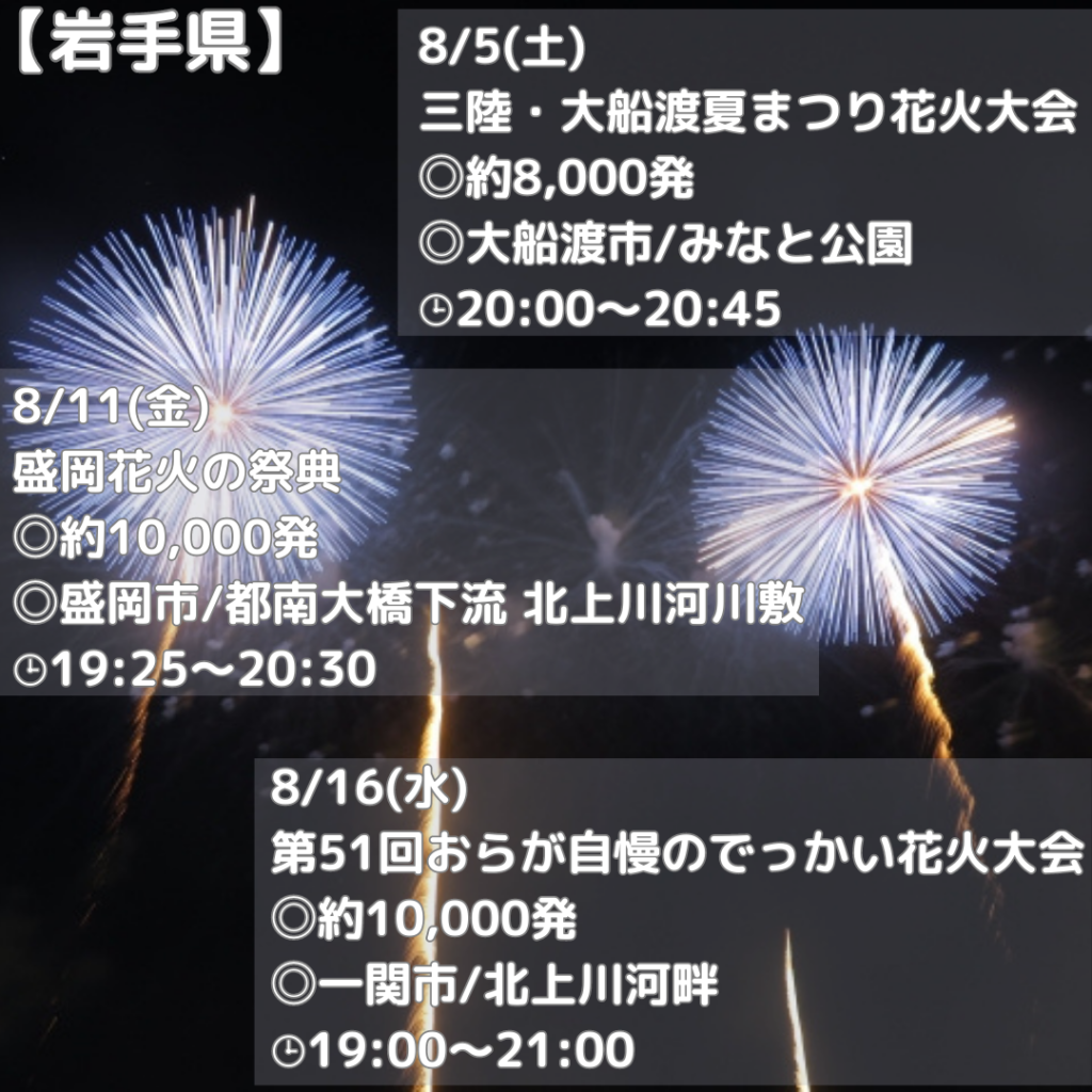 日本の夏の風物詩、花火大会。今年は4年ぶりに復活する花火大会も増えています◎今回は【東北】の花火大会を一部ご紹介♬日本の夏を彩る花火。暑い夏を楽しもう☀