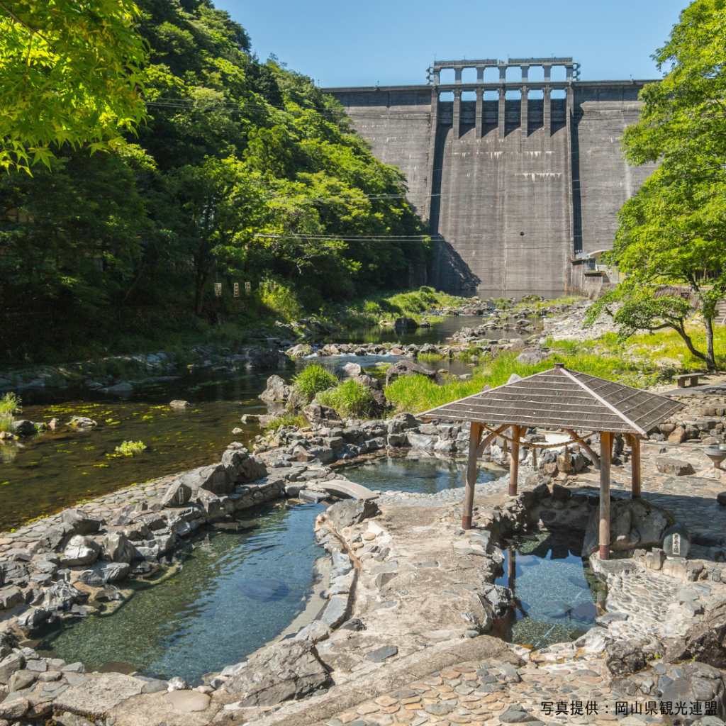 湯原ダムの下流 旭川沿いに温泉街が広がっています。
