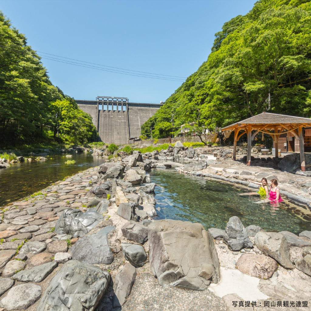 川底から湧き出る温泉でできた天然の大露天風呂。