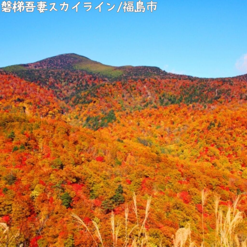 吾妻連峰を縫うように走る山岳観光道路が赤や黄色に染まります。