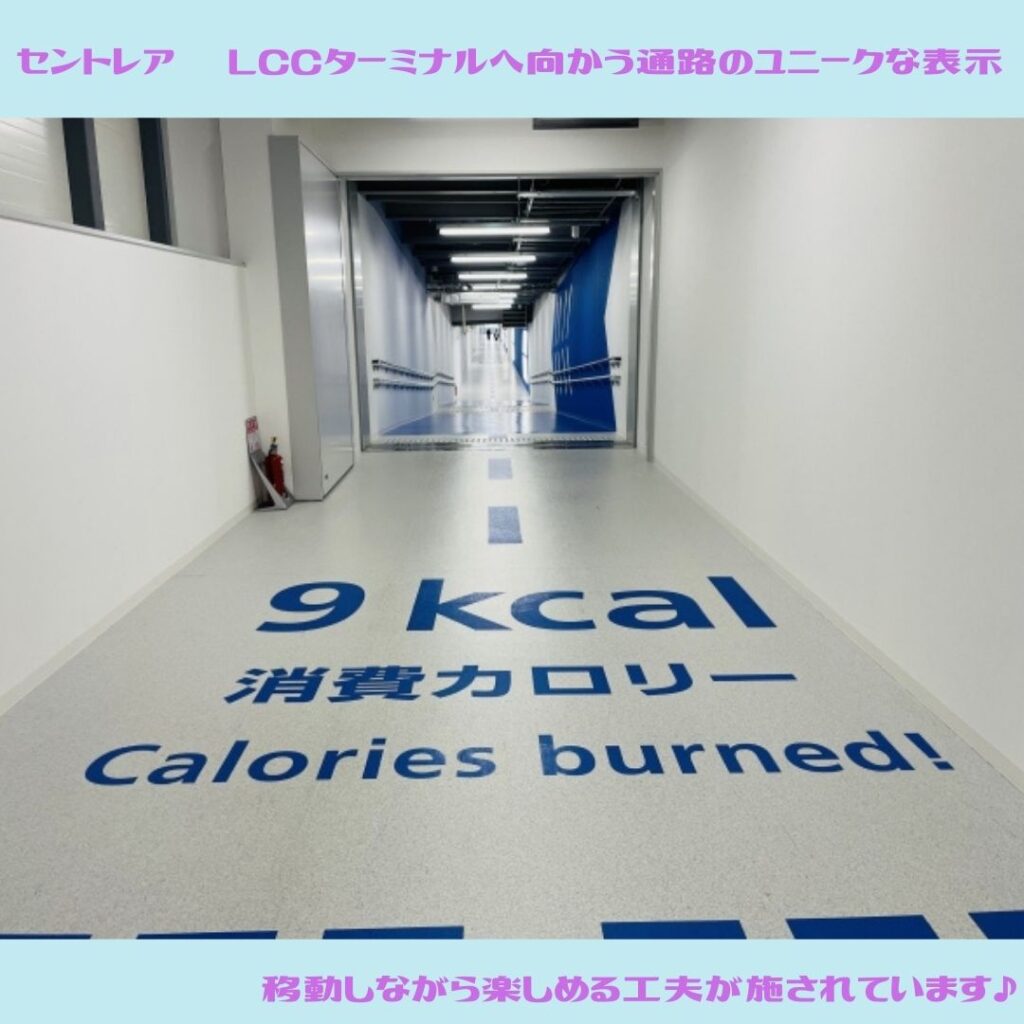 LCCターミナルでは出発ゲートへの通路や到着時の手荷物受取所までの通路に「到着ロビーまで〇〇kcal」など消費カロリーを表示し、楽しみながら歩ける工夫も取り入れられています。