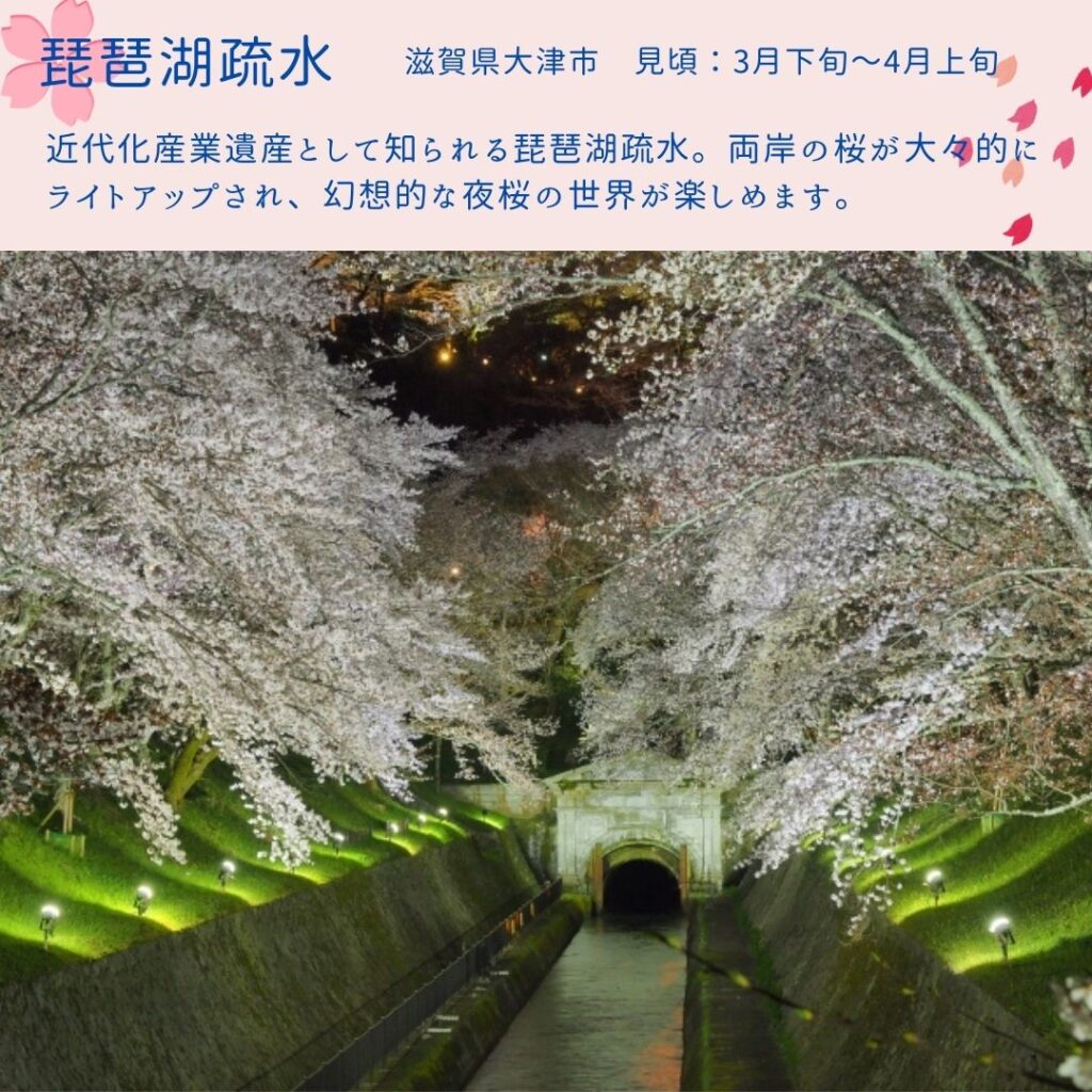 青空と淡い桜のコントラストや、神秘的に輝くライトアップされた夜桜。